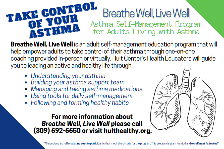 Hult Center for Healthy Living’s Asthma Education & Management Programs help residents of all ages learn about asthma through outreach health education and help those living with asthma better manage and control their asthma through asthma self-management classes.